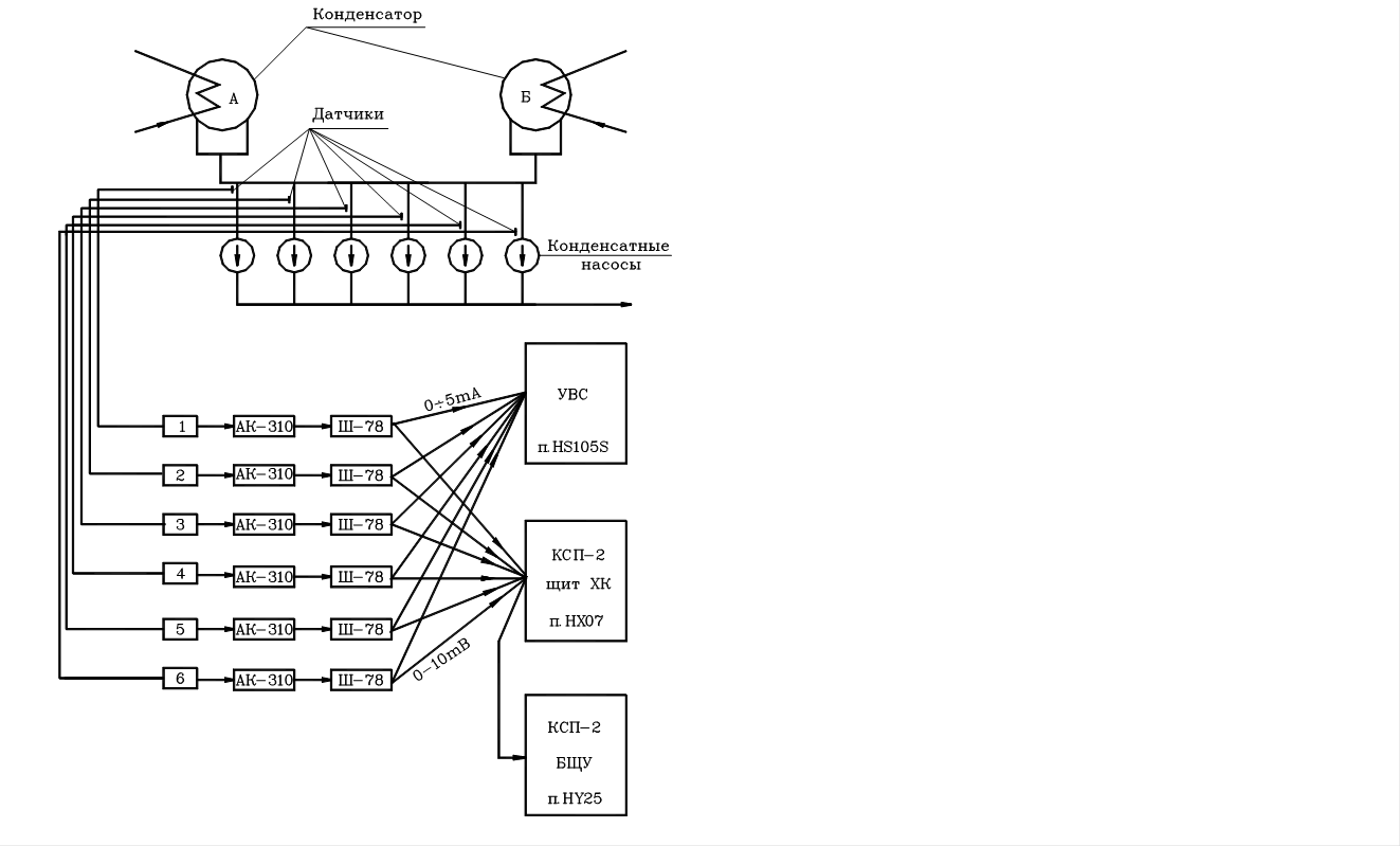 Рис. 49 Схема кондуктометрического контроля присосов в конденсат турбин.