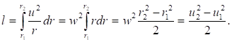 Удельная работа центробежных сил при перемещении частицы от r1 до r2 определится по формуле