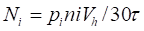 Индикаторная работа, получаемая за единицу времени, называется индикаторной мощностью Ni=Li/τц (τц – время реализации одного рабочего цикла). Если частота вращения коленчатого вала двигателя n,, мин-1, то величина, обратная (1/n), - время одного оборота в минутах и 60/n — в секундах. В этом случае τц=(60/n) 0,5τ, где τ - коэффициент тактности, равный двум для двух- и четырем для четырехтактных двигателей. С учетом того, что рi =Li/Vh при количестве цилиндров двигателя, равном i, мощность Ni (кВт) равна