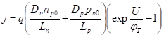 По закону непрерывности тока найденная плотность будет в любом сечении n- и р-областей. Умножив на площадь сечения перехода S, получим формулу для тока:
