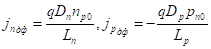 Теперь остается сделать последний шаг: найти диффузионные токи, создаваемые избыточными электронами и дырками. Для этого следует использовать формулы (2.52). В этих формулах производные надо определять для неравновесных концентраций