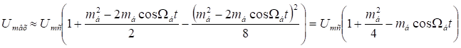 По отношению к скорости изменения амплитуды входного напряжения различают: режим инерционного АД и режим без инерционного АД. В случае без инерционного АД напряжение на выходе детектора полностью повторяет закон изменения вх. напряжения, и в этом случае вых. напряжение детектора описывается выше полученным выражением с учетом Uн »КАДUmс(1+ mб2/4 - mбcosWбt). Если же детектор является инерционным, то «провалы» амплитуды входного напряжения не отрабатываются детектором и можно считать что вых. напряжение АД максимальным значением амплитуды вых. колебания.