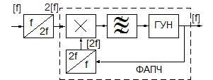 Большой уровень шума обуславливает достаточно широкой полосы пропускания фильтра. Из-за большой нестабильности частоты после умножения на 2 Ппф больше => мощность шума велика. В 1937 году Сифоров для снижения полосы пропускания фильтра предложил использовать ФАПЧ. Частота ГУН = частоте несущей. Если за счет нестабильности частоты меняется частота входного сигнала, то меняется частота ГУНа, однако при этом полоса пропускания полосового фильтра образованная системой ФАПЧ становится узкой.