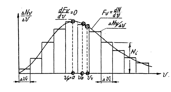 значение скорости, наиболее часто встречающейся в распределении – наиболее вероятной скорости Vp