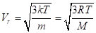Средняя квадратичная скорость Vr соответствующая квадратному корню из суммы квадратов скоростей может быть выражена: