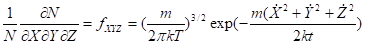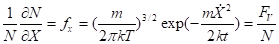 Функция распределения скоростей вдоль одной оси , например, Х описывается выражением: