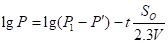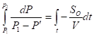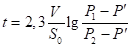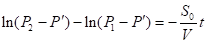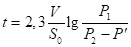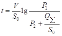 Выведем уравнение для расчёта времени откачки объёма V от начального давления P1 до конечного давления Р2. Для этого возьмём интеграл от полученного выражения в интервале от P1 до Р2 :