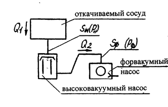 Соотношение скоростей откачки насосов предварительного разрешения и высоковакуумных (сверхвысоковакуумных) насосов соединённых последовательно в одну линию, рис.18а, может быть определено из уровнения стационарного потока: