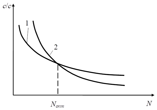 При N < Nопт внедрение метода взаимозаменяемости и стандартизации приводит к увеличению себестоимости выпускаемой продукции, при N > Nопт – к уменьшению себестоимости.