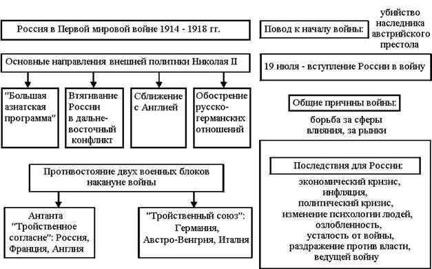 Первой мировой войне предшествовала как дипломатическая, так и военно-техническая подготовка. Еще в 1882 г. был образован Тройственный военно-политический союз под эгидой Германии. В него вошли Австро-Венгрия и Италия. Ему противостоял военно-политический блок России, Англии и Франции. Он сформировался к 1907 г. и получил название Антанты. Эти две силы, по сути, и явились главными инициаторами и участниками войны. Экономической основой возникновения Первой мировой войны явились крупные монополии. Они приобрели решающую роль в хозяйственной и политической жизни империалистических стран.