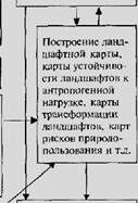 ные для каждого из выделяемых типов. Привлечение информации о генезисе территории, которая может быть получена с геоморфологических карт, из материалов полевых обследований и литературных источников позволяет как конечный продукт получить типолого-генетическую ландшафтную карту. На основе полученной ландшафтной карты с привлечением других материалов проводится построение оценочных карт, используемых при проектировании размещения конкретных объектов. В итоге создастся карта проектируемых объектов, карта прогнозируемого ущерба природным ресурсам, проектируется сеть мониторинга. На рис. 6 представлен один из вариантов схемы организации данных в рамках ГИС для проведения ОВОС.