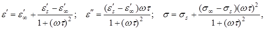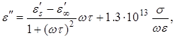 где t – время релаксации для молекулы воды (порядка 10-11с), а s - ионная проводимость, не зависимая от частоты.