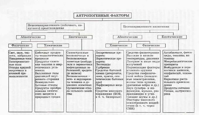 Классификация антропогенных экологических факторов