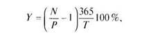 где Y— годовая доходность к погашению по выпускам государственных краткосрочных бескупонных облигаций; N— номинальная стоимость облигации; Р — цена на аукционе или на вторичных торгах по облигациям (в процентах от номинала); Т — число дней до погашения облигаций.