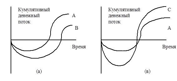 Обладая альтернативными возможностями инвестированиия денежных средств, потенциальный инвестор стремится максимизировать свою экономическую выгоду ( доход, прибыль). Можно сформулировать следующее общее правило выбора - если в любое время кумулятивный денежный поток по одной из альтернатив А, по крайней мере, не меньше кумулятивного денежного потока другой альтернативы В, и имеется хотя бы один момент времени, когда поток А превышает поток В, то альтернатива А экономически предпочтительнее В.