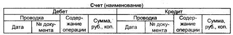 Каждый счет имеет шифр и название. Бухгалтерский счет представляет собой особый регистр, применяемый только в бухгалтерии. В нем фиксируется движение (приход, расход) и состояние (сальдо) хозяйственных средств и их источников.