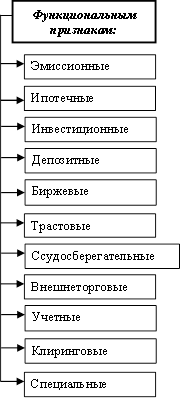 | Сберегательные | Операции по образованию собственного капитала, приему и хранению вкладов населения и предприятий, продаже государственных ценных бумаг, депозитных и сберегательных сертификатов и других ценных бумаг | Операции по размещению средств в ценные бумаги, предоставлению кредитов банкам, организациям и населению |