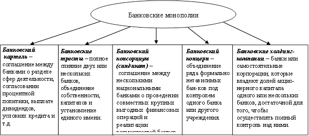 Банковские монополии – это объединение банков или банки гиганты, играющие большую роль в банковском деле, в целом в экономике.