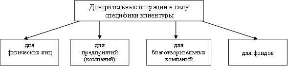 Трастовые операции – операции банков по доверительному управлению средствами (имуществом, деньгами, ценными бумагами) и выполнение иных услуг по поручению и в интересах клиентов (доверительные операции)