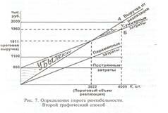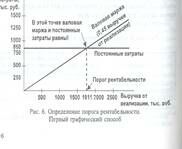 Под порогом рентабельности (точкой безубыточности) понимается такая выручка от реализации, при которой предприятие не имеет убытков и еще не имеет прибыли.