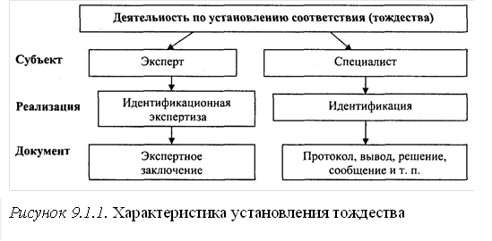 Таким образом, идентификация, проводимая экспертом, или решение той же задачи в других видах экспертиз (судебной, таможенной, товароведной и т. д.) является идентификационной экспертизой со всеми присущими этой деятельности процедурами, требованиями и т. д. (рис. 9.1.1).