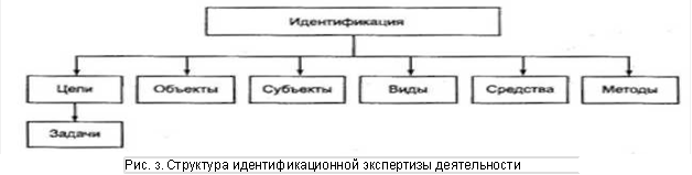 Идентификация как вид деятельности имеет структуру, характеризующуюся определенными структурными элементами (рис. 3).