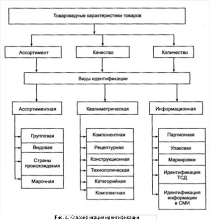 В зависимости от основополагающих товароведных характеристик товаров различают следующие виды идентификации (рис. 4).