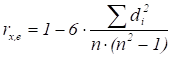 где di – разность между рангами xi и еi, i = 1,2, ..., n; n – число наблюдений.