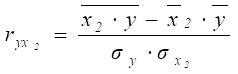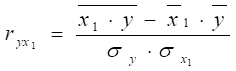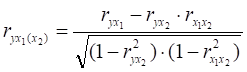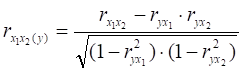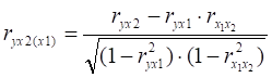 Частный коэффициент корреляции первого порядка между признаками х1 и у при исключении влияния признака х2 вычисляют по формуле: