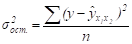 где m – число параметров в уравнении регрессии; п – объем выборки; σост. – среднее квадратическое отклонение результативного признака у от выровненных значений ŷ.