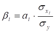 где σxi — среднее квадратическое отклонение i-го фактора; σy - среднее квадратическое отклонение показателя.