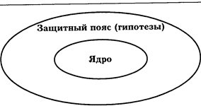 Ядро — наиболее фундаментальные положения теории; защитный пояс образуют вспомогательные гипотезы, которые конкретизиру­ют теорию, расширяя область ее применения. Доказанные гипоте­зы сливаются с ядром, недоказанные служат объектом полемики с оппонентами, защищая ядро теории. Например, ядром марксизма являются трудовая теория стоимости, теория прибавочной стои­мости, всеобщий закон капиталистического накопления, а их за­щитным поясом — закон тенденции нормы прибыли к понижению и другие законы.