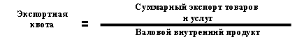 Показателем, отражающим участие страны в международной торговле является ЭКСПОРТНАЯ КВОТА