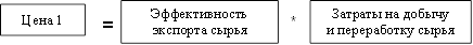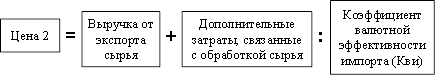 1. Цена, при которой эффективность экспорта сырья равна эффективности обработанного товара (Цена1)