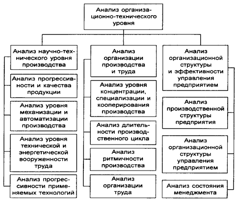 Состав задач анализа организационно-технического уровня производства можно представить в следующей схеме: