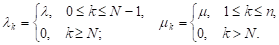 Например, система, где бригада из m специалистов обслуживают N клиентов. Предполагается, что m<N (m механиков, N машин).Обозначим через λ – интенстивность возникновения обращения к специалисту (интенсивность возникновения неисправности) в расчете на одного клиента, то