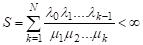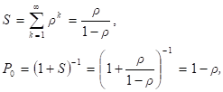 Если r < 1, то S < ¥ и стационарный режим существует. Если же r ³ 1, то S= ¥. Таким образом в данной системе стационарный режим существует тогда и только тогда, когда