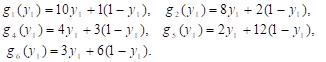 gi(y1, y2) = ai1y1 + ai2y2 + ai3(1 – y1 – y2), i = 1, 2, 3,