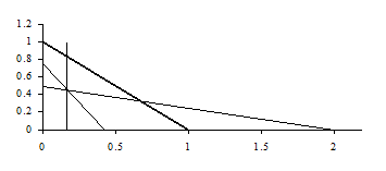 Воспользуемся графическим способом решения, для этого составим линейные функции, которые выражают ожидаемые выигрыши фермера, соответствующие чистым стратегиям первого игрока, оставщимися после проведения процедуры доминирования: