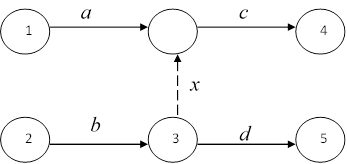 Тогда требуется введение фиктивной работы x и фиктивного события