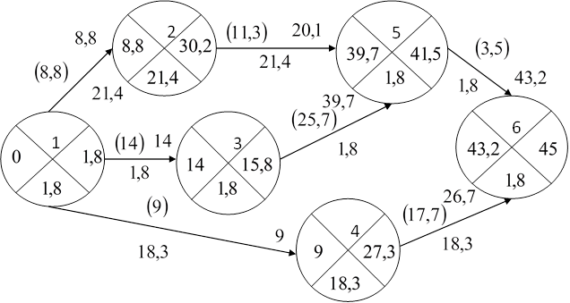 Рис.10.10 Сетевой график процесса с результатами расчёта