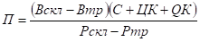 Рскл – расходы по доставке единицы продукции на склад предприятия-потребителя при поставке материальных ценностей через посредника, дополнительно включая оплату складских наценок;