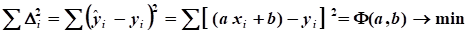 Чтобы найти коэффициенты регрессии a и b применим метод наименьших квадратов (МНК).