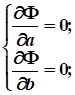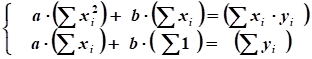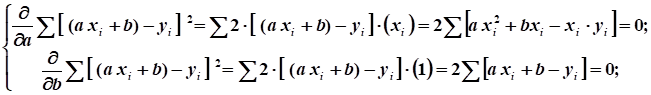 Чтобы найти минимум, приравняем нулю частные производные этого выражения по параметрам a и b . Получим нормальную систему для определения коэффициентов: