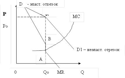 Т.к. кривая D имеет излом при цене Ро, кривая MR имеет разрыв при соответствующем значении объема выпуска Qo.