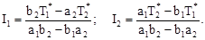 Решая эти уравнения относительно I1 и I2 (предполагая выполнение условия a1/b1