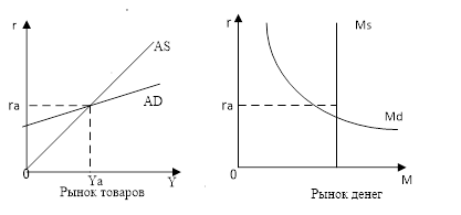 Данная предпосылка означает, что ставка процента и объем производства должны изменяться таким образом, чтобы обеспечить одновременное решение уравнений IS и LM.