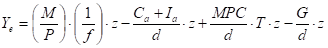 Если выражение f/[f+de/(1-MPC)] мы обозначим через z, то получим уравнение совокупного спроса: