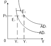 Рис.6.16 Влияние сдвига кривой LM при неизменных ценах на кривую совокупного спроса