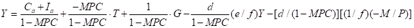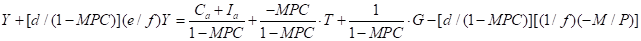 Отталкиваясь от этих уравнений, он преобразовал основное макроэкономическое тождество и решает его относительно Y.